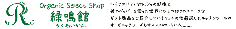 | 緑鳴館インターネットショップは ←こちらです! ハイクオリティなMr.シゥの胡椒と 彼のペッパーを使った世界にひとつだけのユニークな ギフト商品をご紹介しています。その他厳選したキッチンツールや オーガニックフーズもオススメがいろいろ........ |